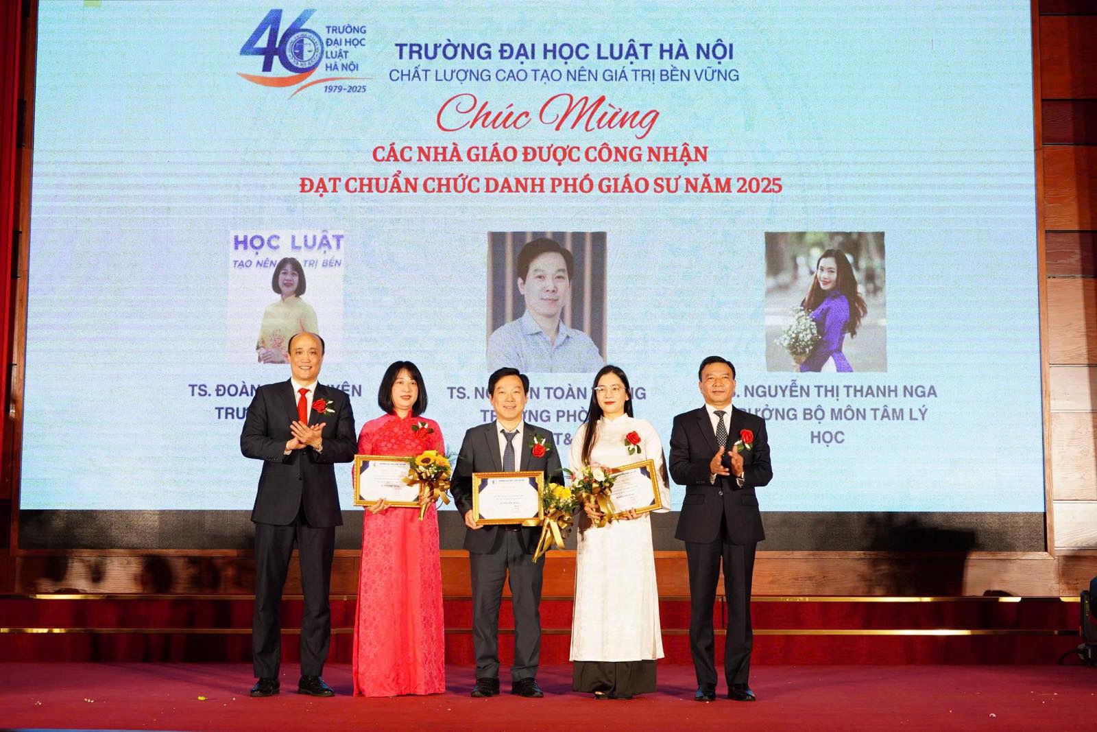 Trong không khí rộn ràng của tháng 11, tháng kỉ niệm thành lập Trường Đại học Luật Hà Nội và Ngày nhà giáo Việt Nam, Khoa Pháp luật hình sự tự hào khi nhận tin vui TS. Nguyễn Thị Thanh Nga - Trưởng Bộ môn Tâm lý học được công nhận đạt chuẩn Phó giáo sư năm 2025. Khoa Pháp luật hình sự kính chúc Tân Phó giáo sư Nguyễn Thị Thanh Nga sẽ đạt thêm nhiều thành tích mới, cống hiến tri thức cho sự nghiệp giảng dạy, nghiên cứu khoa học của Khoa và Trường Đại học Luật Hà Nội trong chặng đường tới. Trân trọng chúc mừng Tân Phó giáo sư!